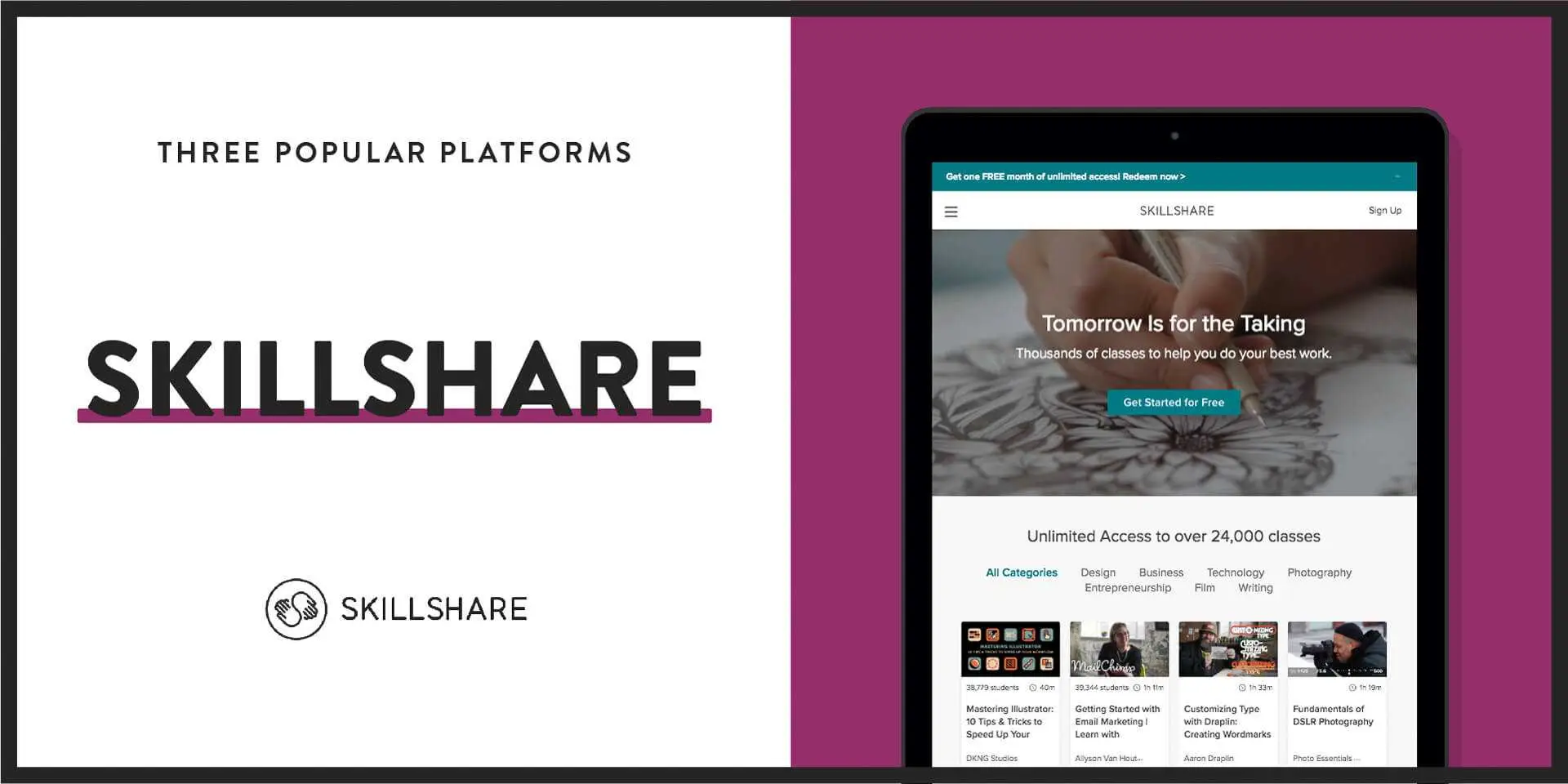 SkillshareSkillshare is a platform you may already be familiar with.