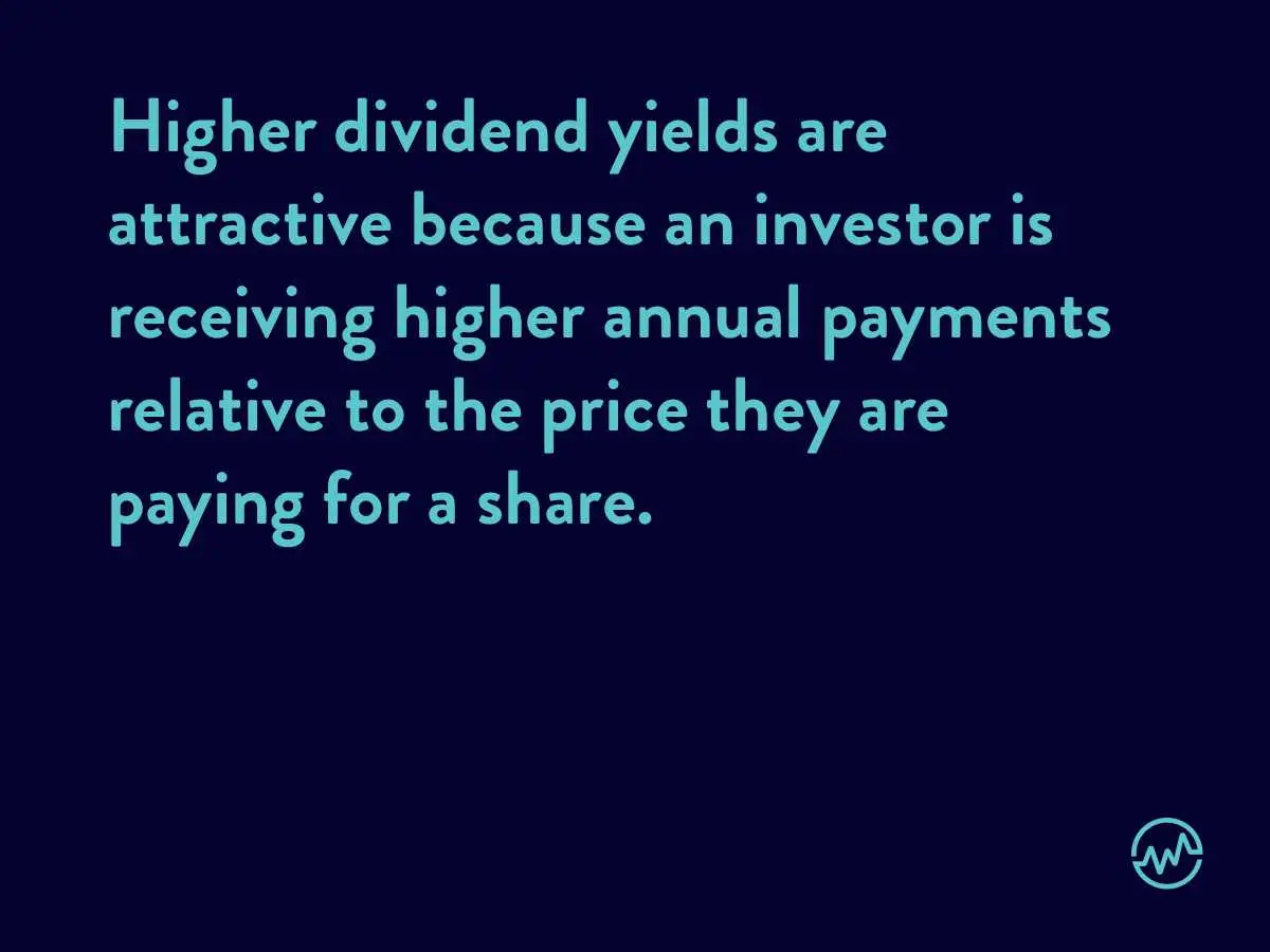 Dividend yield is a ratio of a company’s annual dividends divided by its share price. Dividend yield is written as a percentage.
